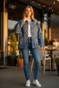 Optez pour cette magnifique veste en jeans et ses détails perle qui lui donne une clarté incroyable.
